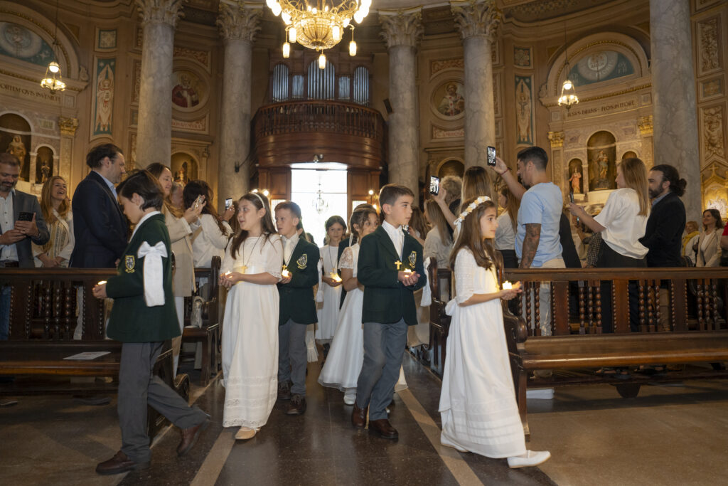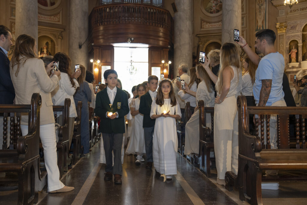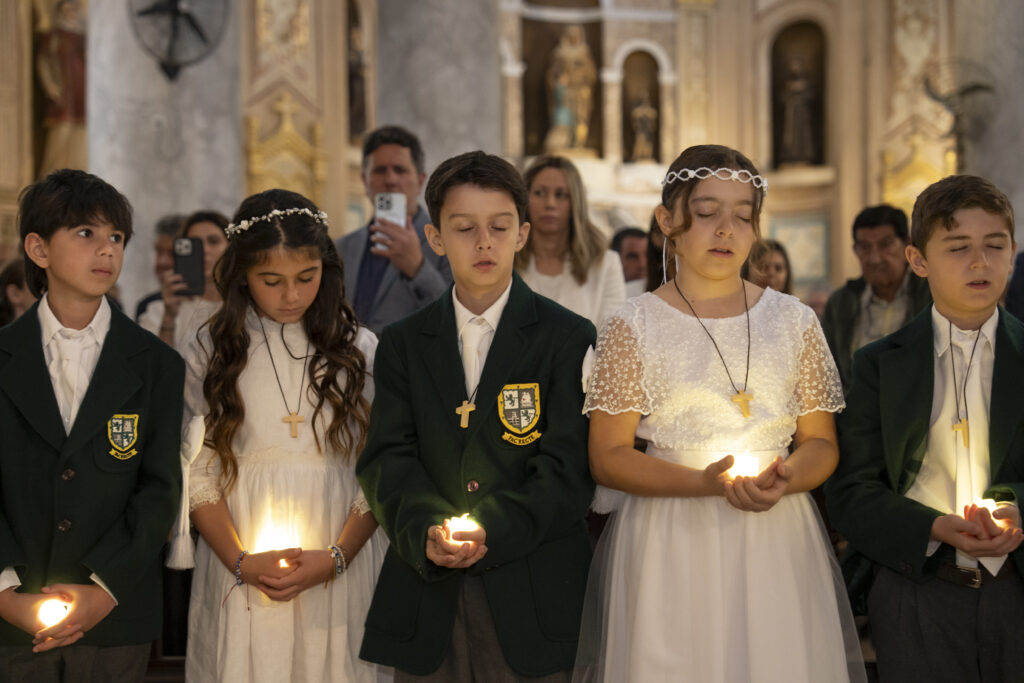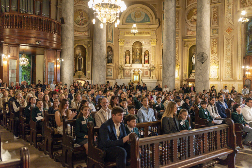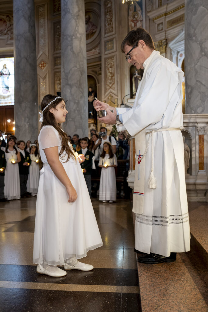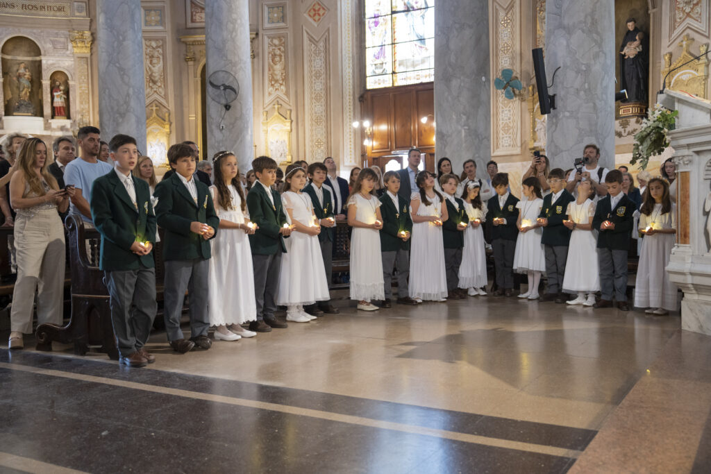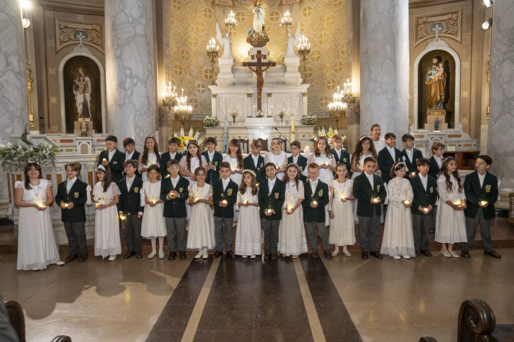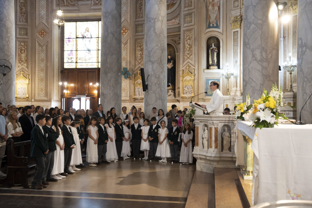 Al día siguiente, sábado 18 de octubre, el templo volvió a llenarse, esta vez con la alegría de los más pequeños. A las 10 hs, 34 alumnos de P4 (4º grado) se acercaron para recibir por primera vez la comunión. La misa fue oficiada por el Capellán del Belgrano Day School, Pbro. Alejandro Russo, y acompañada por el Padre Sebastián Achcar, quien sumó su bendición al emotivo momento. Como todos los años, Andrea Pelliccia, Head of Primary, leyó la lectura del día.